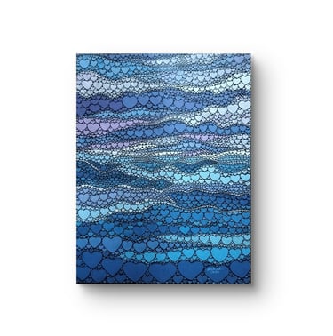 The painting depicting the second day of creation using heart shapes and shades of blue and violet likely conveys a creative and artistic interpretation of the biblical account of God's creation. The use of heart shapes could symbolize the divine love and intention behind each element of creation. On the second day of creation, according to the biblical narrative, God separated the waters to form the sky or firmament. The choice of using heart shapes in this context could signify the inherent goodness and love embedded in God's act of creation.
